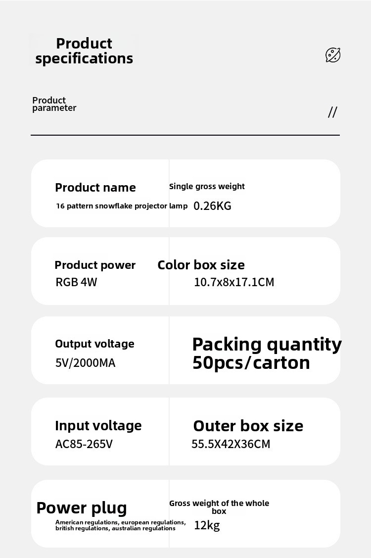 Projection Patterns: 16 options (snowflakes, blizzard, Halloween, etc.)