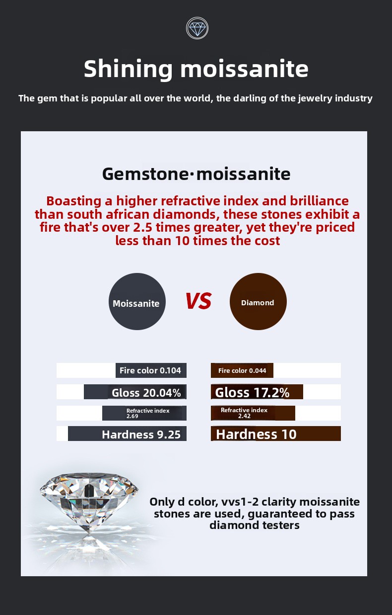 Moissanite Gemstone: Features 50-point moissanite for brilliant sparkle and elegance.